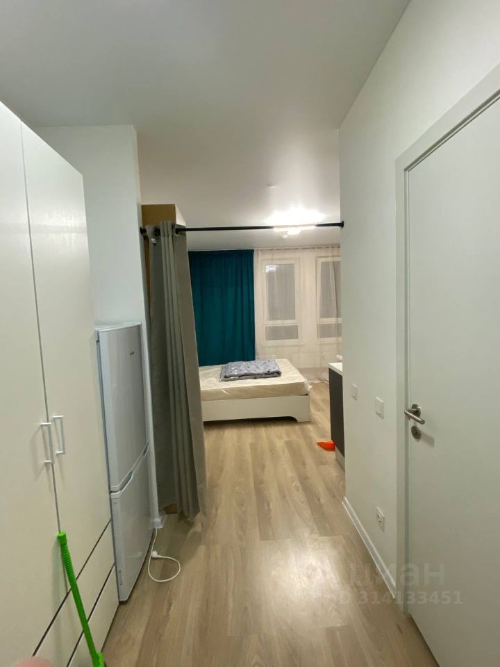 Между прихожей и комнатой установлена стойка с шторой.