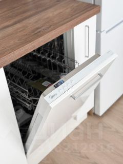 - Большая кухня со встроенной техникой: посудомоечная машина, духовой шкаф, варочная панель, рециркуляционная вытяжка, а также микроволновая печь, установленная на специальную полку, чтобы освободить рабочую поверхность кухни и тихий холодильник, не требующий разморозки (Total No Frost),