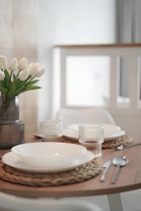 - Стильная обеденная зона с отдельным освещением, которая при необходимости может стать и удобным комфортным рабочим местом,