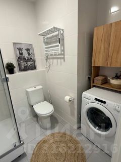 - А также совмещенный санузел с душевой кабиной, стиральной машиной с загрузкой на 8 кг (что дает возможность без проблем стирать большое постельное белье или шторы), двумя шкафчиками для хранения и электрическим полотенцесушителем с удобной полочкой и крючками для сушки вещей.