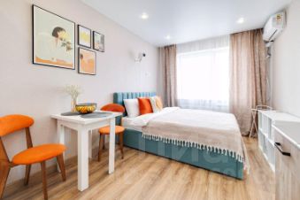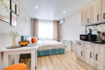 Уютная студия в спальном районе для 2х гостей — идеальны как для семейного отдыха, так и для командировки.