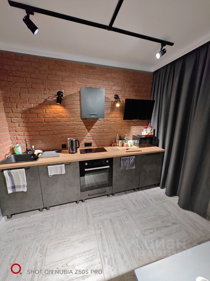 Квартира после ремонта. Никто постоянно не проживал. Стиль лофт. Укомплектована мебелью, техникой. Интернет подключен. В комнате двуспальная кровать с хорошим, мягким матрасом без пружин, шириной 160 см, 3ех створчатый глубокий, вместительный шкаф, прикроватные тумбы, розетки, светильники, действительно большой телевизор для кино (эффект полноценного кинотеатра, есть подписка к онлайн-кинотеатрам ivi и okko), журнальный стол, выход на балкон. Шторы блэкаут, стены цвета кофе и не отражают свет, можно создать абсолютную темноту и хорошо выспаться (кому это важно). На кухне угловой раскладной диван (с одним спальным местом, для временного размещения гостя), стол, кухонный гарнитур с встроенной мойкой, индукционной 2ух комфорочной плитой, сушкой встроенной в нижний шкаф, большой 2ух камерный холодильник, телевизор, вытяжка, комплект посуды, СВЧ, чайник, фильтр для воды. Ванная с душевой стойкой, стиральная машина, гигиенический душ, большая и глубокая раковина с системой хранения под ней, зеркало с подсветкой, постоянно горячий полотенцесушитель, напор воды хороший. В прихожей место для хранения обуви, верхней одежды, зеркало в полный рост, небольшой антикварный столик. Много картин в интерьере. Входная дверь звукоизолированная. Есть гладильная доска, сушилка, утюг с отпаривателем.