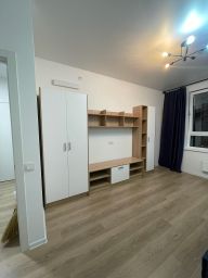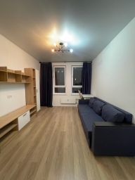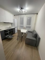 Сдаётся уютная однокомнатная квартира в новом доме по адресу: Московская область, Ленинский городской округ, деревня Коробово, Взлётная улица, 4. Квартира расположена на 4 этаже 12-этажного дома, построенного в 2024 году. Общая площадь составляет 33.8 кв. м, жилая — 14.7 кв. м, кухня — 10.9 кв. м. Высота потолков — 2.8 метра. Окна выходят во двор, что обеспечивает тишину и уют.