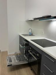 В квартире сделан косметический ремонт. Внутри есть вся необходимая мебель как на кухне, так и в комнате, что избавит вас от необходимости дополнительных затрат. Из бытовой техники установлены холодильник, посудомоечная и стиральная машины, духовка, кондиционер. Санузел совмещённый, оснащён ванной.