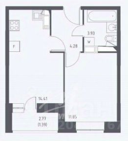 жилая - 12 кв.м, кухня-гостиная - 15 кв.м.