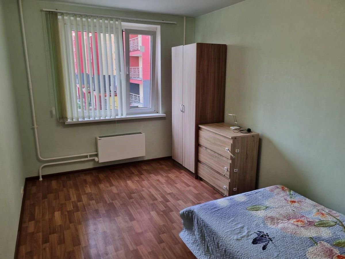В квартире выполнен евро ремонт, установлены шкафы и телевизор. Из окон открывается вид на зеленый двор с детской площадкой и открытой парковкой. Лоджия застеклена и утеплена, что позволяет использовать ее как дополнительное пространство.