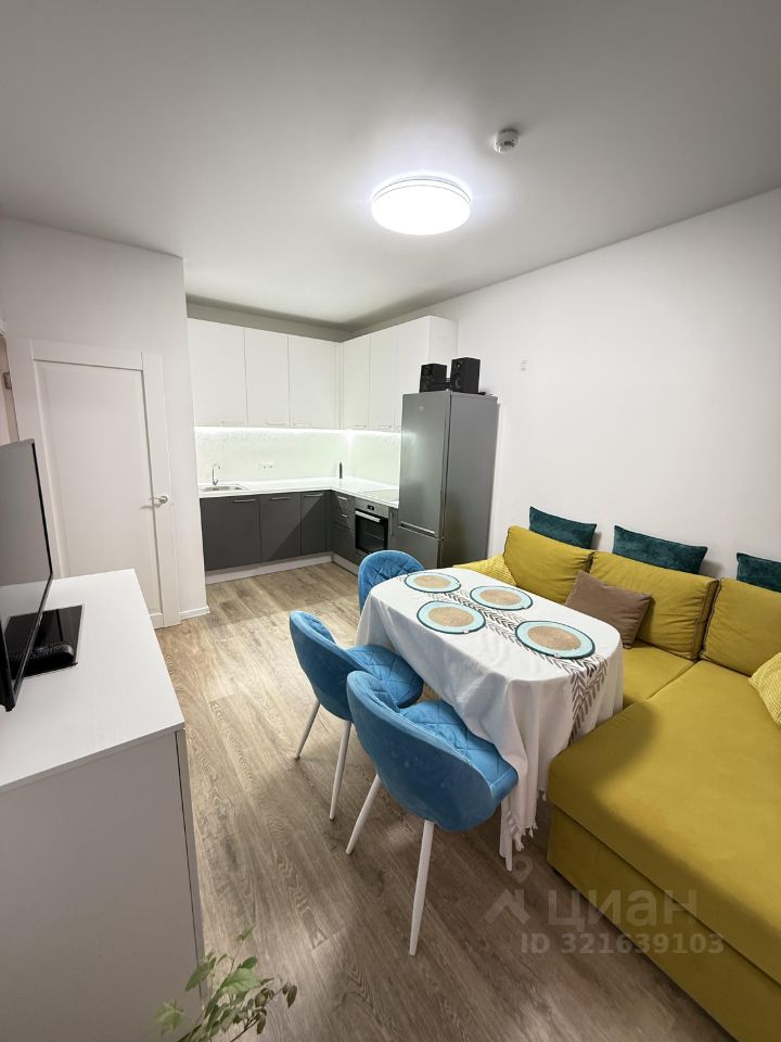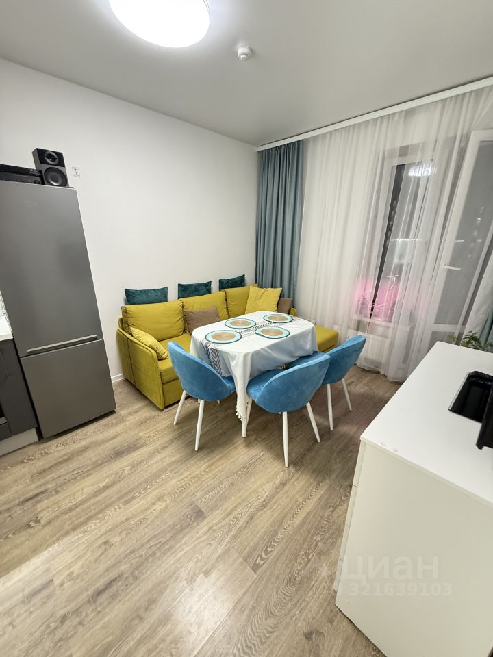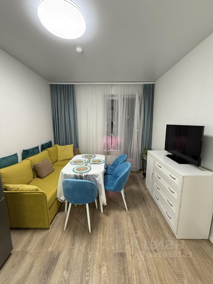 В квартире сделан евроремонт, она полностью готова к комфортному проживанию. В комнате и на кухне есть вся необходимая мебель. В комнате есть возможность поставить кровать за счёт средств собственника. Ванная комната оборудована ванной и стиральной машиной. В квартире есть современная техника: холодильник, посудомоечная машина, телевизор. Всё предусмотрено для вашего удобства.