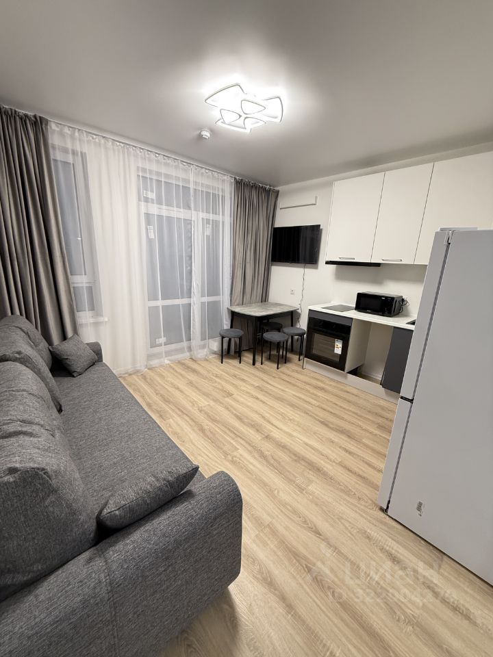 В квартире сделан современный евроремонт. Студия полностью меблирована новой мебелью: удобная мебель на кухне и в жилой зоне. В ванной комнате установлена душевая кабина и стиральная машина. Техника также вся новая, из техники в наличии холодильник, микроволновая печь, духовой шкаф, варочная панель, вытяжка, чайник и телевизор. Есть доступ в интернет.