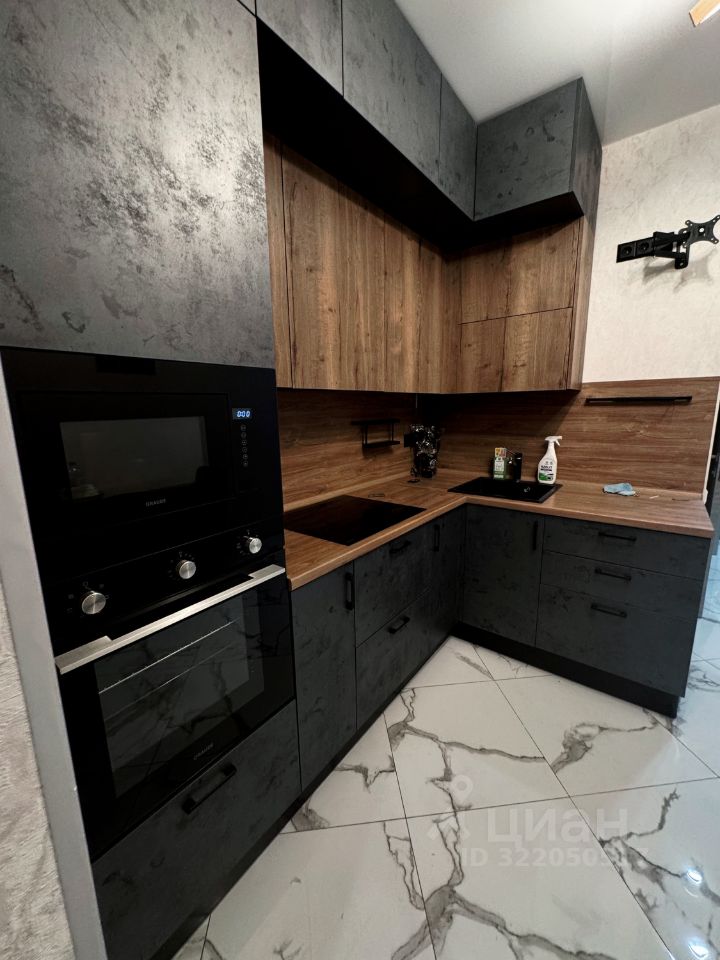 Кухня полностью оборудована: плита, микроволновка, духовой шкаф.