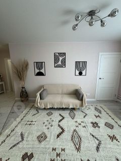 - Два спальных места: двуспальная кровать 140х200 с ортопедическим матрасом, большой двухспальный диван и маленький диван в столовой.