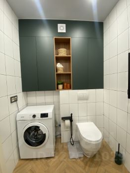В санузле отличный вместительный функциональный шкаф.