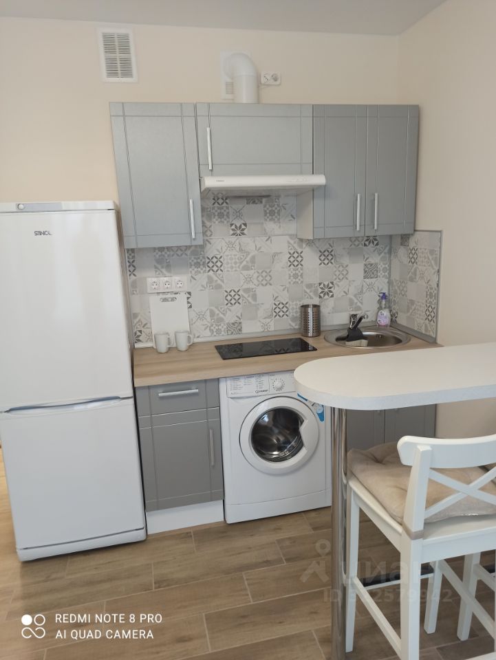 Сдаётся уютная студия в современном доме 2021 года постройки. Квартира расположена на 4-м этаже 9-этажного панельного дома. Общая площадь — 19 кв. м, жилая — 14 кв. м, кухня — 4 кв. м. Высота потолков — 2.7 метра. Окна выходят на улицу, поэтому в квартире всегда светло и комфортно. До метро можно добраться на автомобиле или автобусе за 10 минут.
