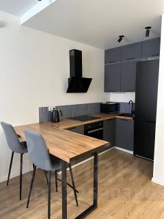 - В квартире есть все необходимое для комфортной жизни: кухонный гарнитур со всей необходимой техникой (варочная панель, духовой шкаф, холодильник, посудомоечная машина); электрический чайник; посуда; два вместительных шкафа в прихожей и спальне, двуспальная кровать, раскладной диван, в гостиной оборудовано рабочее место, есть кондиционер и стиральная машина, а также телевизор со смарт ТВ и пр.)