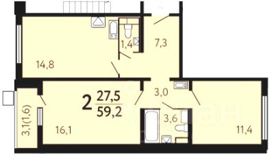 Просторная, светлая, тихая, двухкомнатная квартира - распашонка с большой кухней 15 м² и двумя раздельными санузлами (два туалета).