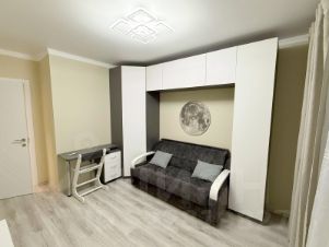 В спальне установлена мебель транформер, легким движение комфортный диван превращается в кровать с ортопедическим матрасом.