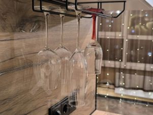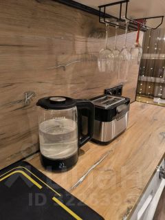2.Двухсторонняя кухня, оснащённая всей необходимой техникой (двухкамерный холодильник, 3х конфорочная варочная панель, вытяжка, духовой шкаф, микроволновка, чайник, тостер, встроенная стиральная машинка) и большой мойкой на две чаши.