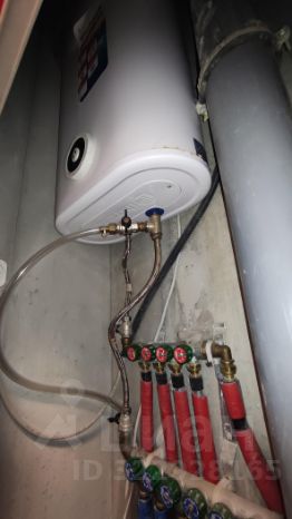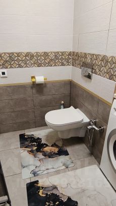Санузел совмещённый со стиральной машиной и бойлером, есть подогрев пола.