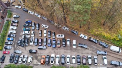 Территория дома огорожена и охраняема, парковка стихийная во дворе, два шлагбаума.