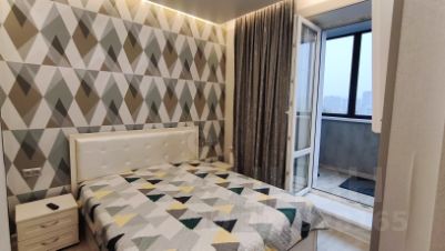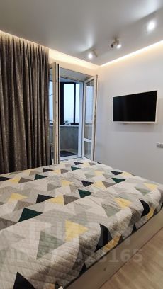 Изолированная спальня с двуспальной кроватью, большим ЖК телевизором, гардеробной и выходом на застеклённую лоджию с которой открывается панорамный вид на парк.