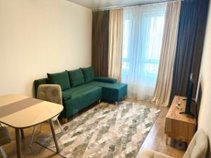 Сдается чудесная светлая евродвушка с кухней гостиной и отдельной спальней. На 16-м этаже 16-ти этажного дома. Сдается на длительный срок. Вся мебель и техника подобраны с любовью к современному комфорту. Без балкона.