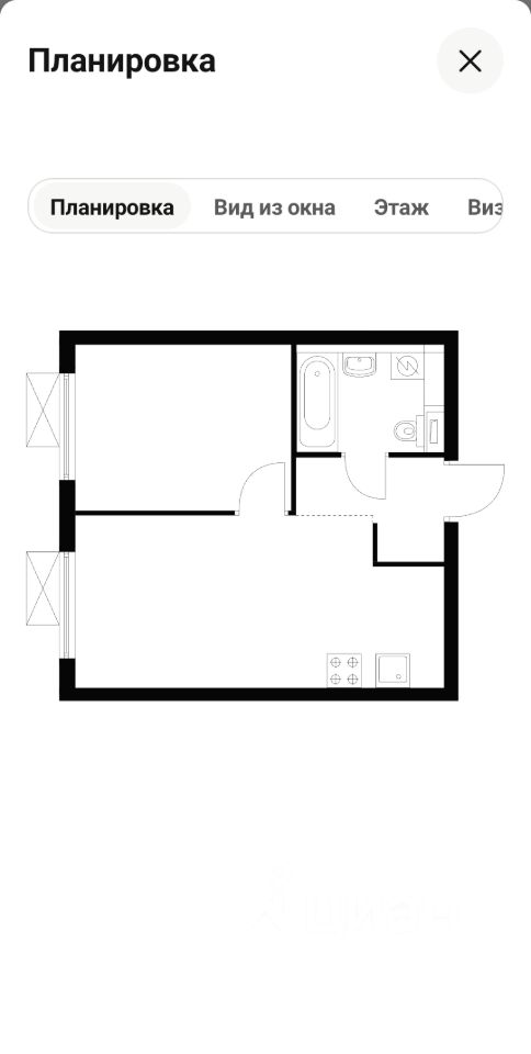 Квартира без мебели, что дает возможность обустроить ее по собственному вкусу. Планировка включает совмещенный санузел с ванной, а окна выходят на улицу, поэтому в квартире всегда светло.