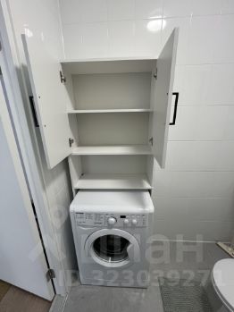 • Совмещенный санузел: душевая кабина, стиральная машина, шкаф, полки.
