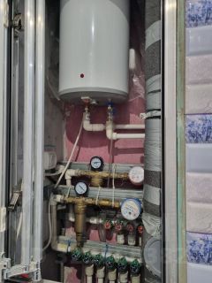 Большая совмещенная ванная комната 5,18 кв.м. с мебелью, ванная с гидромассажем, стиральная машина, встроенный бойлер (на случай отключения горячей воды).