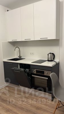 Студия с косметическим ремонтом, в ней есть все необходимое для комфортного проживания. На кухне и в комнате имеется мебель, а также современная техника: холодильник, посудомоечная и стиральная машины. В совмещенном санузле установлена душевая кабина.