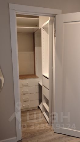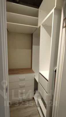 Много мест для хранения: собственно гардеробная, шкаф в прихожей, комод, полки и шкаф на балконе, подвесные полки в гостиной.