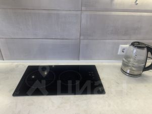 В обеденную зону 15 кв.м. органично вписался кухонный гарнитур, оборудованный импортной бытовой техникой, включая: холодильник, варочную панель, вытяжку, СВЧ-печь, электрочайник; обеденный стол и два стула. Пол - ламинат, в ванной плитка.