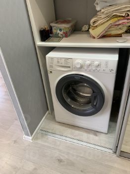 В квартире просторный совмещенный санузел, оборудованный качественной импортной сантехникой, есть проточный водонагреватель, пол и стены - плитка. В наличии: стиральная машина, гладильная доска, сушилка закреплена на балконе.