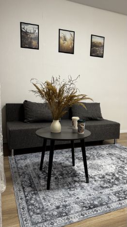 В квартире выполнен качественный евроремонт. Жилая площадь составляет 27.3 кв. м, а кухня совмещена с просторной гостиной-столовой. Квартира полностью меблирована, есть все необходимое для комфортного проживания: холодильник, стиральная машина, раскладной диван, кухонный гарнитур, двуспальная кровать, столовый инвентарь. Ванная комната оснащена как ванной, так и душевой кабиной. Окна выходят на улицу, что делает квартиру светлой и уютной.