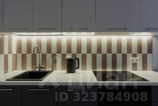 — Кухонный гарнитур со всей техникой: варочная панель, духовой шкаф, посудомоечная машина, холодильник, вытяжка, чайник и дополнительная подсветка рабочей зоны.