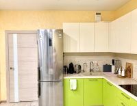 Выполнен качественный ремонт с применением хороших отделочных материалов. Планировка квартиры на две стороны, просторный балкон утеплён и застеклён. Обустроена вместительная гардеробная. В квартире мало проживали. Установлен дорогой кухонный гарнитур с новой техникой (куплена весной 2024 г.).