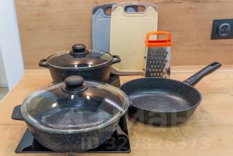 Квартира в полном вашем распоряжении! - Холодильник, электрический чайник, керамическая варочная панель, микроволновая печь, посуда, соль, сахар, специи, кофе и чай, масло для жарки, средство для мытья посуды.