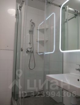 Санузел:стеклянные душевые перегородки, электрический полотенцесушитель, зеркало сподсветкой.