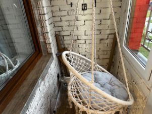 духовой шкаф, варочная панель, микроволновая печь, вытяжка. Квартира с лоджией и креслом - гамак для отдыха от городской суеты.