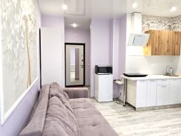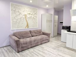 Сдаётся на длительный срок! Красивая студия с евроремонтом и в плюс большая лоджия 4 метра. В квартире есть всё для комфортного проживания: удобный раздвижной диван, места хранения - 2 платяных шкафа, встроенный кухонный гарнитур с вытяжкой, холодильник, микроволновка, отдельная плита, стиральная машинка в ванной комнате. Квартира светлая и тёплая. Студия создаёт ощущение дополнительного свободного пространства, обилия воздуха и света.
