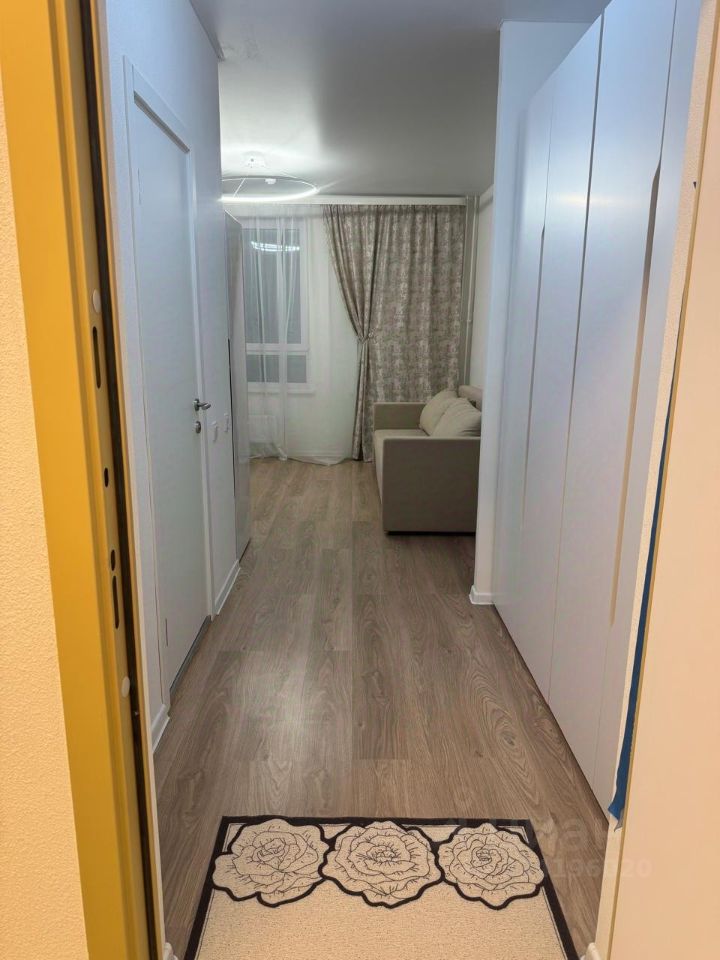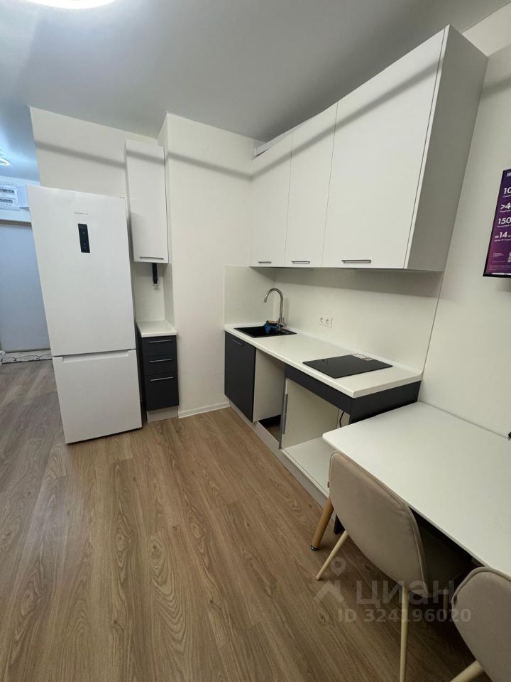 Здесь уже есть вся необходимая мебель как в комнате, так и на кухне. Из техники вас ждут кондиционер, холодильник и стиральная машина. В совмещённом санузле установлена душевая кабина.