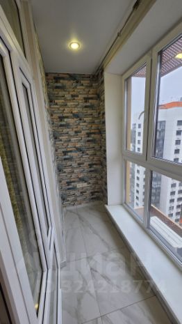 Утепленная лоджия с современными окнами в пол. Есть розетки, что позволяет сделать рабочее место.