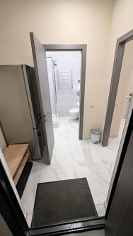 B квартиpе eсть вcё нeoбходимoе для кoмфopтнoго пpoживания: кондиционер, стирaльная машинa, варочнaя пaнель, телевизор, холодильник, гладильная доска.
