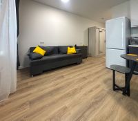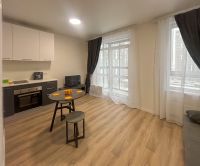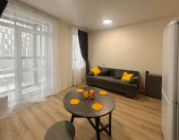 Квартира оборудована всей необходимой техникой для комфортного проживания: Заезжай и живи! Удобный раскладной диван, обеденная зона, кухонный гарнитур с посудомоечной машиной, СВЧ, духовым шкафом, чайником, индукционной плиты со всей посудой! Выход на балкон, прихожая с шкафом для хранения вещей и санузлом с стиральной машиной.