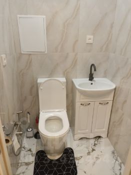 Квартира полностью меблирована и оснащена всей необходимой техникой: холодильник, стиральная машина и телевизор. В комнате и на кухне есть мебель, что позволяет сразу же заселиться и наслаждаться уютом. В квартире два отдельных санузла, один из которых оборудован ванной. Современный евроремонт подчеркивает стиль и качество интерьера.