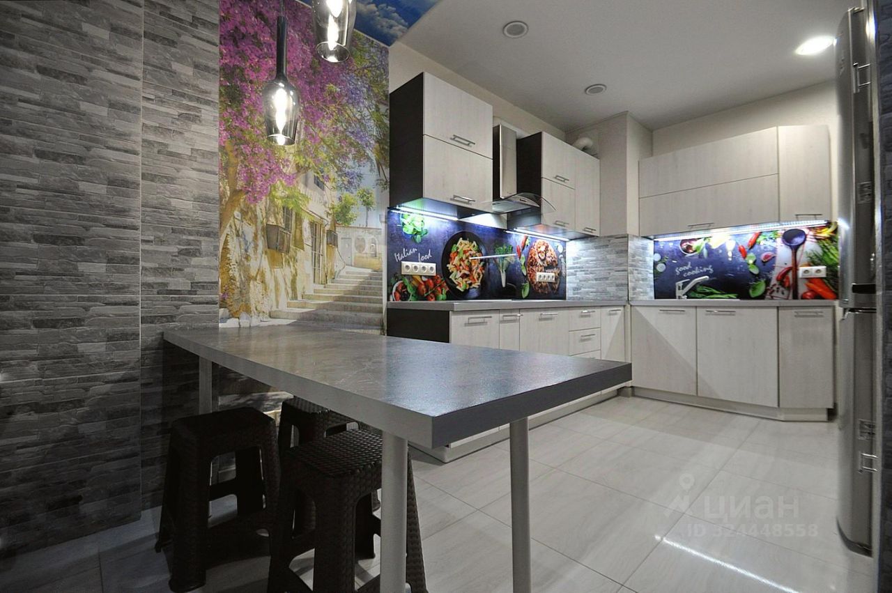 Вашему вниманию предлагается дизайнерская однокомнатная квартира с красивым панорамным видом на лес из окон. Расположена на 8 этаже 9-ти этажного монолитного дома постройки 2017 года. Общая площадь за счет объединения лоджии с кухонным пространством составляет 40 м кв! Очень интересная планировка получилась за счет панорамного остекления в пол на лоджии, а теперь и кухне, просторно, светло и красиво. Сидя за столом ощущаешь себя в кают-компании воздушного лайнера, медленно плывущего над лесом)) Визуальному увеличению пространства способствует подвесной потолок в стиле неба с облаками на кухне и в санузле. Сдержанная цветовая гамма кухни выгодно подчеркивает наличие яркого и аппетитного фартука в рабочей зоне). Кухня оборудована плитой, духовым шкафом, посудомоечной машиной, причем духовой шкаф расположен на удобной высоте в отдельном пенале, а не под варочной панелью, что не создает лишней угрозы перегрева блока управления и выхода его из строя. Пол теплый. Освещение кухни поделено на зоны, что не только удобно, но и создает дополнительный уют. В коридоре достаточно просторно и располагается полноценный высокий и глубокий шкаф-купе. Комната с альковом и двуспальной кроватью хорошего размера 180х200 с абсолютно новым матрасом, шкафом для белья и одежды и довольно просторной гостиной зоной, есть кондиционер. Окна выходят на юго-запад. Санузел выполнен в стиле hi-tech, сочетается с общим цветовым решением квартиры, стационарная душевая кабина с тропическим дождем и гигиеническим душем. Соседи приличные, тихие, рядом ни маленьких детей, ни лающих собак) В общем - все располагает к умиротворенному и гармоничному отдыху после трудового дня, отрада для глаз и души. Рассмотрим одного жильца или семейную пару без детей и животных, не курящих, на длительный срок. Ключи на руках, показы оперативно по договоренности, депозит разобьем. Игорь.