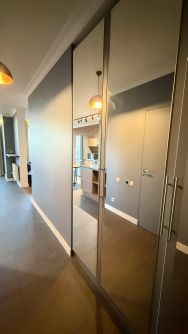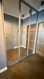 Теплый пол в ванной и кухне, итальянская кухня, новая бытовая техника. Шумоизоляция по кругу. На кухне окна в пол, зимой тепло. Отдельный тамбур на этаже.