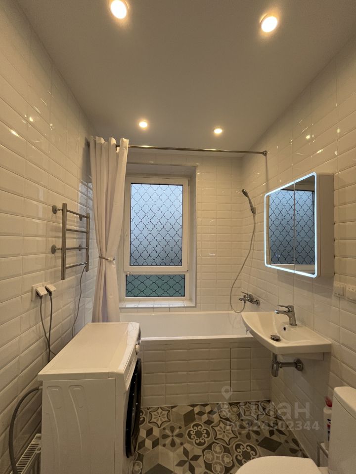 Планировка: кухня-гостиная с обеденной зоной и зоной ТВ, две отдельные комнаты, просторный санузел с окном, ванна и стиральная машина.