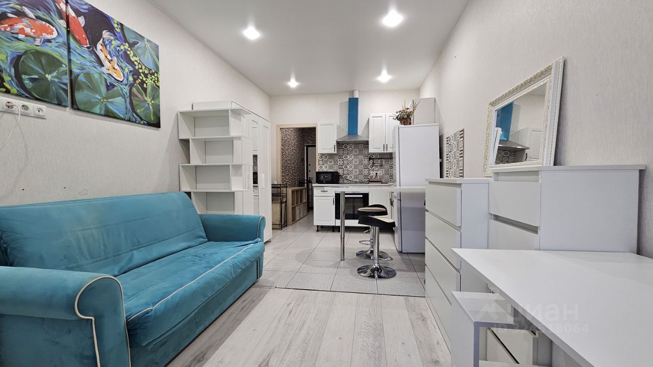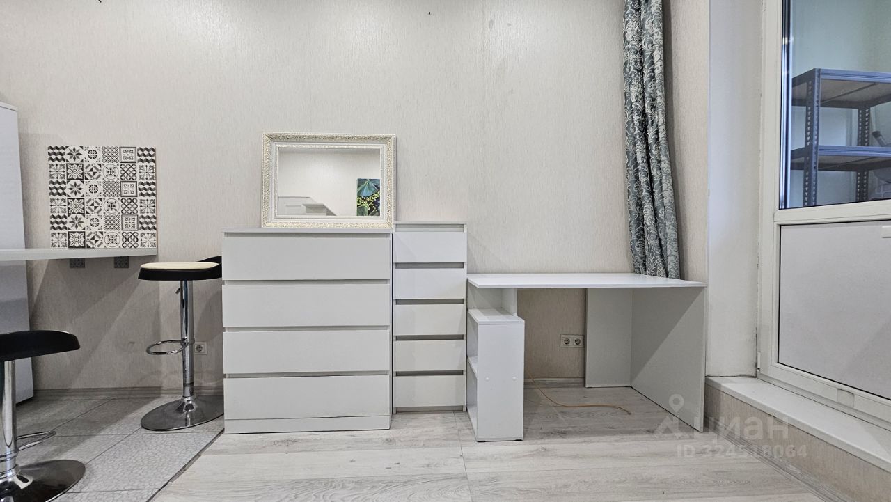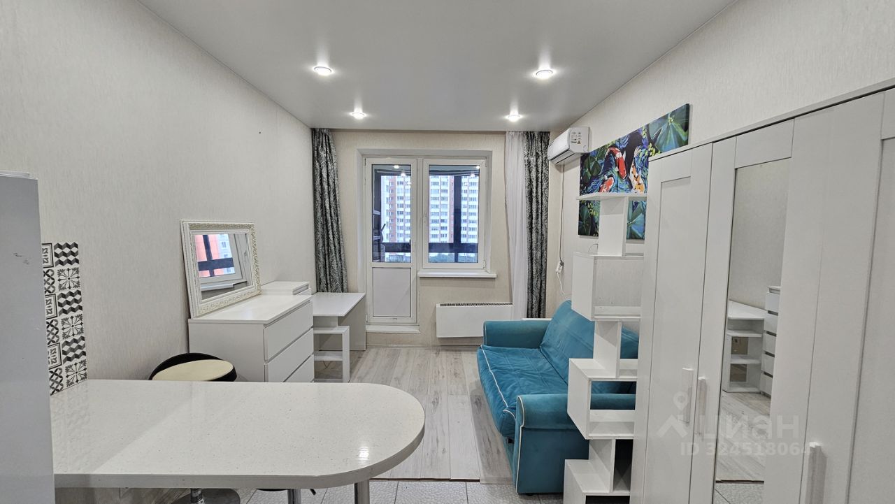 Уютная студия в современном доме, расположенном в поселке городского типа Дрожжино. Квартира площадью 24 кв. м находится на 6-м этаже 25-этажного дома, построенного в 2017 году. В студии есть балкон, откуда открывается вид на тихий двор. Для вашего удобства в доме предусмотрены пассажирский и два грузовых лифта.