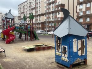 Инфраструктура района хорошо развита: рядом с домом находятся школы, детские сады, гипермаркет Карусель и другие магазины, что делает проживание здесь удобным для семей с детьми. Во дворе дома уютная детская площадка.