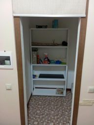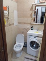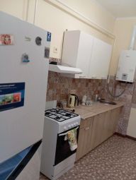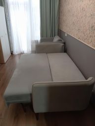диван, шкаф, стеллаж, кладовка, оборудованная полками, телевизор, холодильник, газовая плита, чайник, стиральная машина, беспроводной пылесос; кухонный гарнитур, столовая группа, набор посуды на 6 персон, кофейный сервиз, по запросу поставим микроволновую печь.