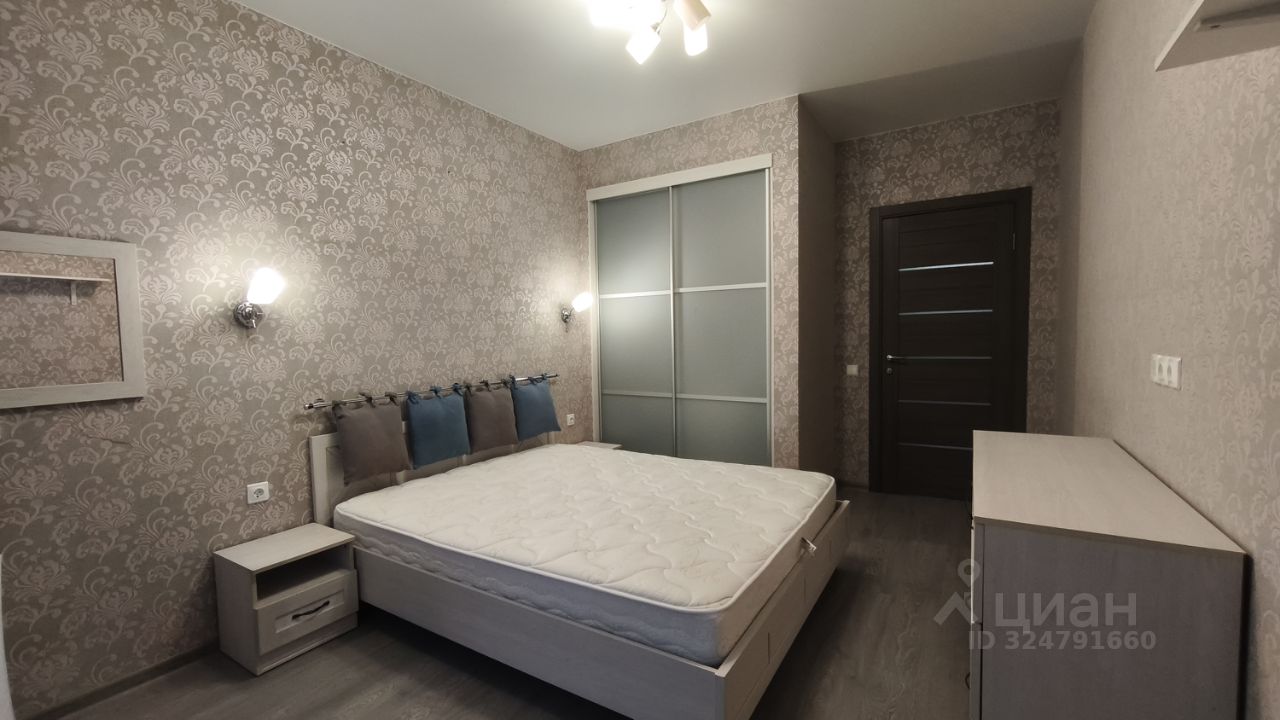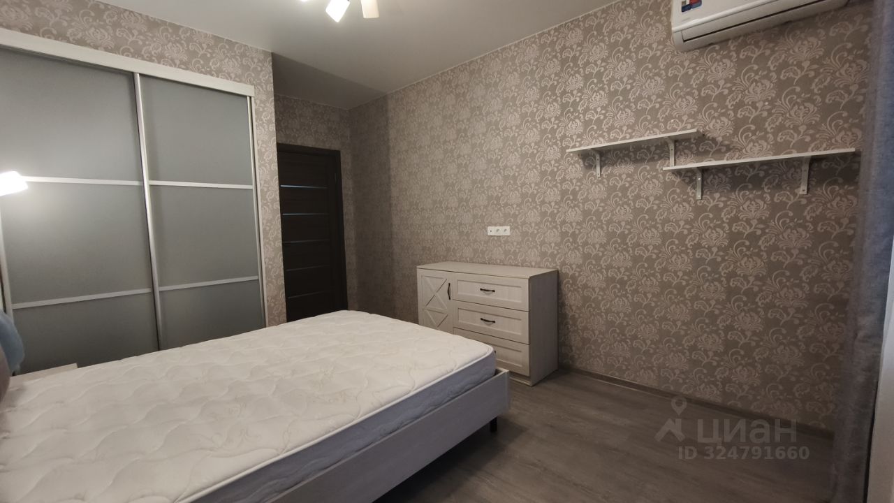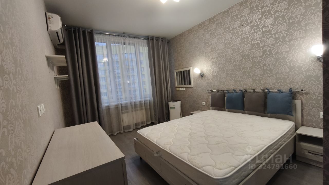 Комнаты полностью меблированы: имеются мягкий раскладной диван, двуспальная кровать, практичные системы хранения, включая несколько шкафов, гардеробная в спальне с зеркалами, кондиционер. Обустроена светлая гостиная с выходом на застекленный балкон. Стеклопакет, ламинат и светлые тона обоев.